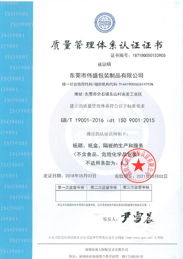東莞市偉盛包裝制品有限公司成立于2010年,已通過ISO9001質(zhì)量體系和ISO14001環(huán)境體系認(rèn)證,公司占地面積5000平方米,十幾年的發(fā)展,公司一直致力于紙箱、紙盒、啤盒、彩盒、飛機(jī)盒等紙制品,廣泛應(yīng)用于電子,家私、工藝品、燈飾、五金、塑膠等產(chǎn)品的包裝上,歡迎新老客戶致電垂詢。